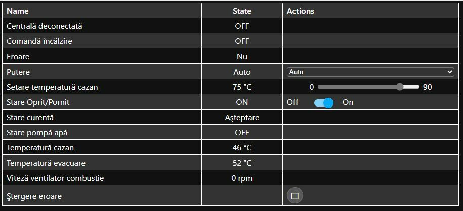Vezi în timp real parametrii de funcţionare, starea centralei în varianta fără Home Assistant. Ai posibilitatea de a modifica valori sau starea centralei, inclusiv resetare eroare.